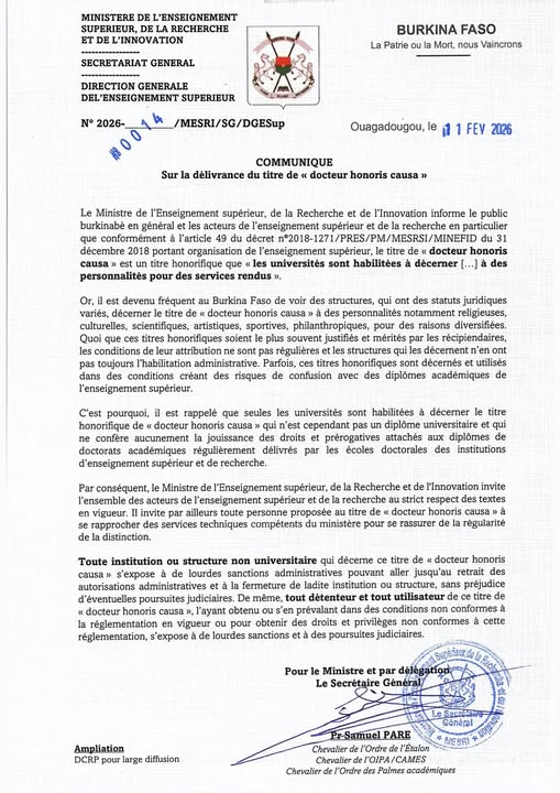 COMMUNIQUE sur la délivrance du titre « docteur…