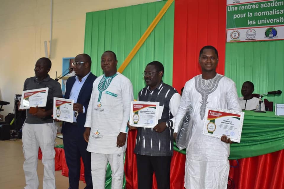 Cette cérémonie officielle de la rentrée académique 2021-2022 des universités publiques du Burkina Faso a été marquée par une remise de bourses aux meilleurs étudiants et d’attestations aux personnels ATOS (Administratifs, Techniques, Ouvriers et de Soutien) les plus méritants.