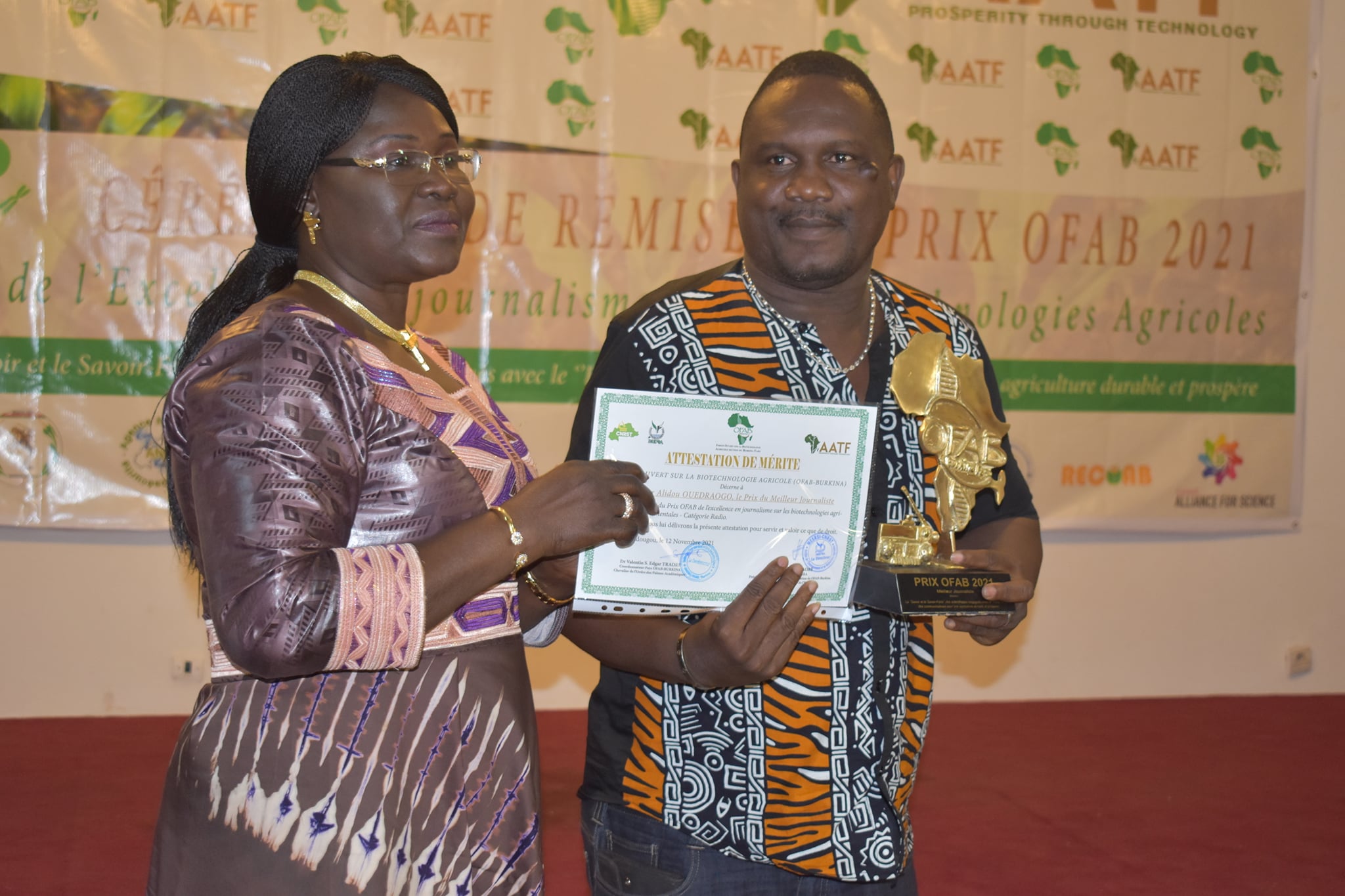 Au terme de leurs travaux, le jury de la 5eme édition a ainsi livré ses résultats consacrant comme gagnants Aboubacar TANAGUIDA du Bafudji.com avec son œuvre « biotechnologie agricole et environnementale : une solution aux insectes ravageurs de cultures » et Alidou OUEDRAOGO de la radio Oméga respectivement dans la catégorie presse en ligne et radio. Ils repartent chacun avec un chèque de 500 000 FCA, un trophée, une attestation et des gadgets. En plus de ces lauréats, certains postulants ont eu droit à des prix d’encouragement et d’autres des prix spéciaux et des gadgets. La catégorie télévision n’enregistre pas de lauréat pour la présente édition
